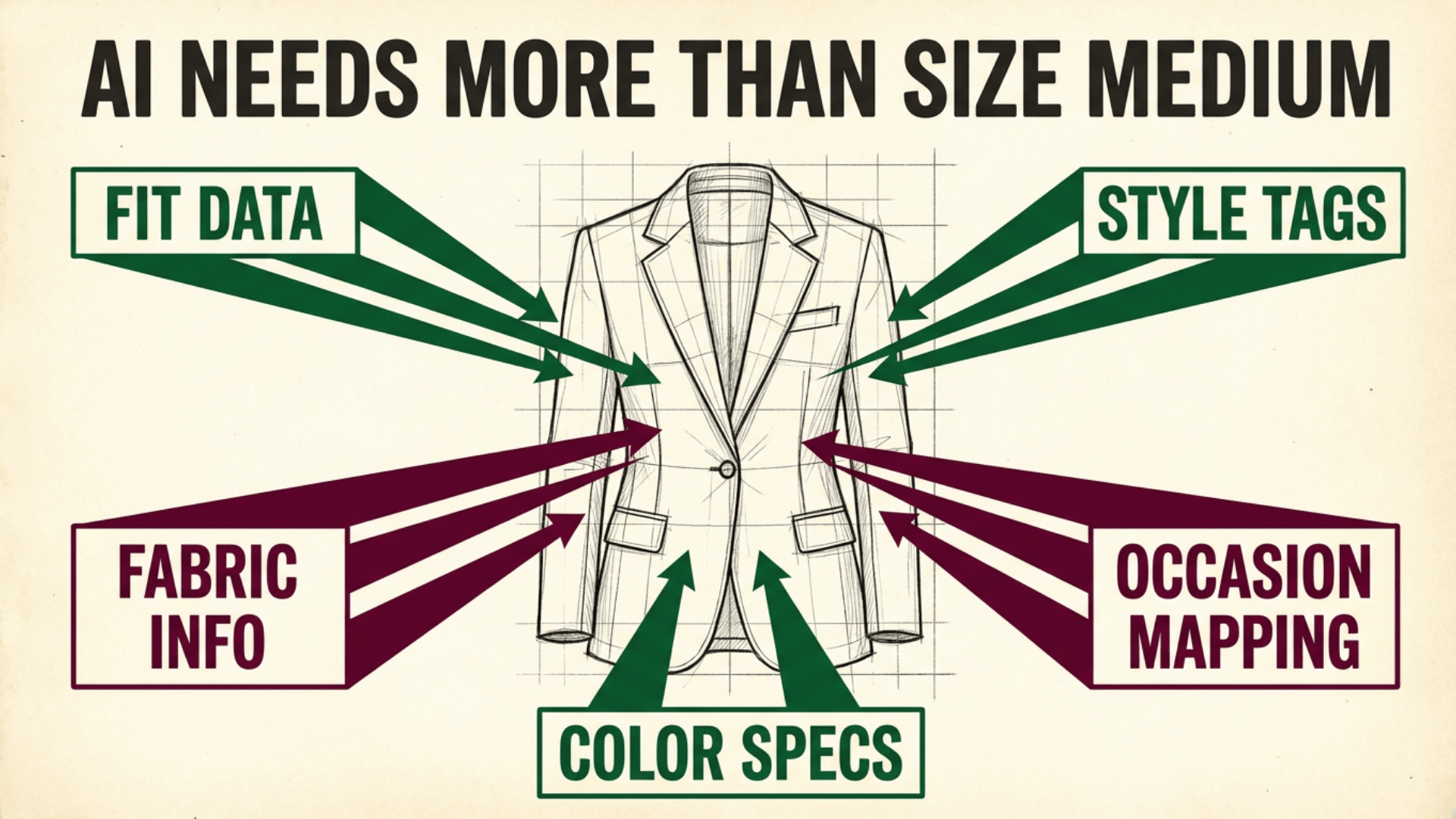Inconsistent sizing across your own product line. If your blazers run large but your shirts run small, AI agents notice and lose confidence in recommending you.